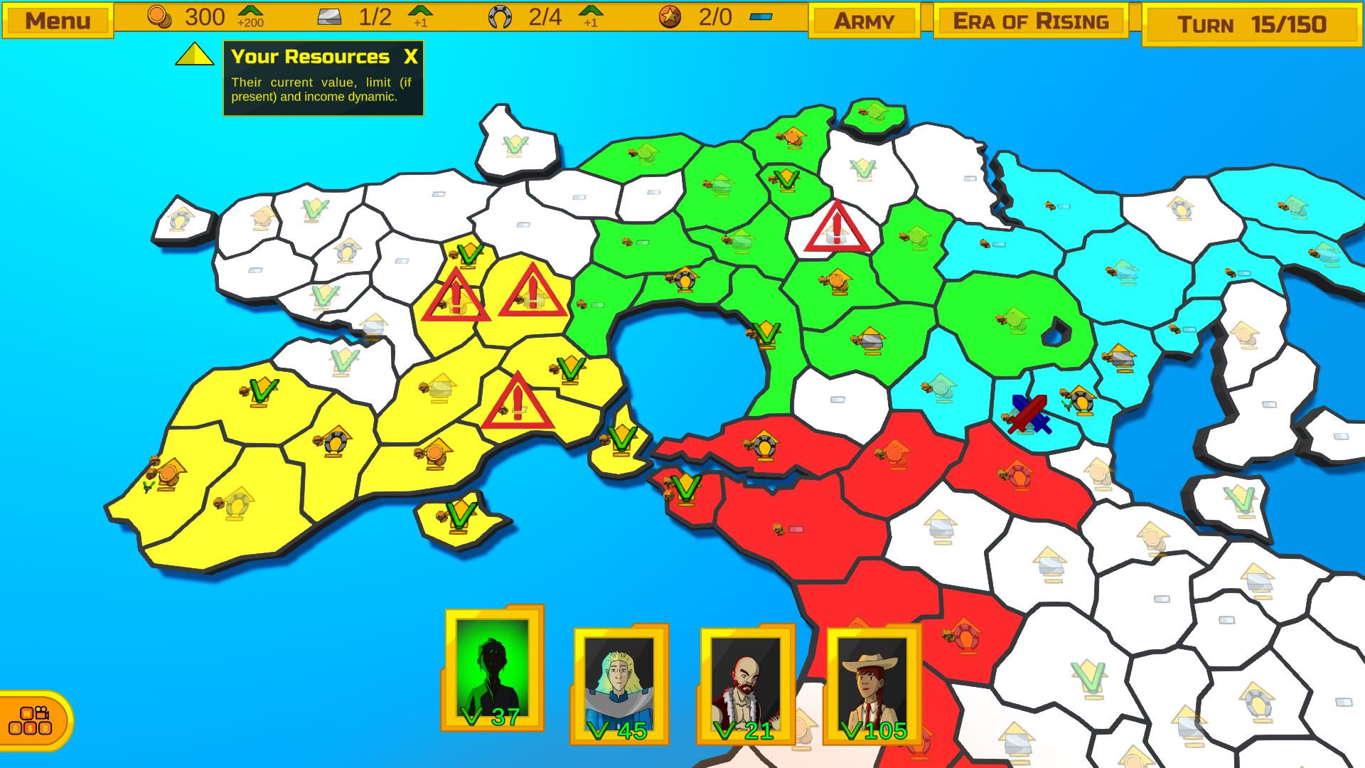 This world is changeable. The game is story-driven (yes, in a turn-based political genre!): Eras determine time periods with certain rules and some events ready to happen. By provoking them, you shape this world's story. Explore different combinations of events to experience unique story lines